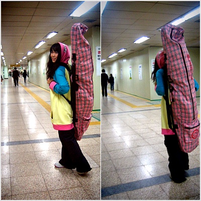둘이서 저렇게 보드백 매고 다니는데 사람들이 다 쳐다보고