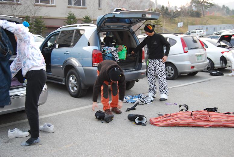 보딩 다 타고...