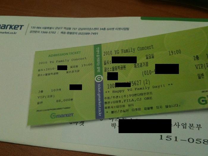 YG패밀리 콘서트 티켓 예매한게 드디어 왔습니다.